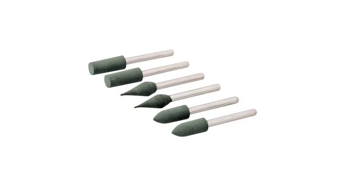 Pointes de polissage en caoutchouc pour la finition et préparation des métaux, alliages, carreaux, de la céramique, pierre, verre, plastique et la fibre de verre. Compatible avec la plupart des outils rotatifs Silverline, GMC et Dremel. Fournis : 2 x cylindres, 2 x cônes et 2 x pointes. Tige de 3,17 mm. Max. 28 000 min-1.